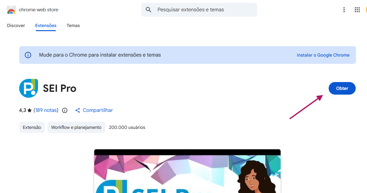 Acesse a chrome web store e cliquem em Obter.