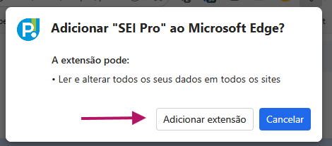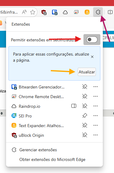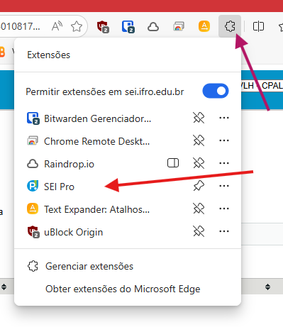 Clique na extensão SEI Pro (seta vermelha)