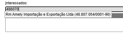 Digite o CNPJ do fornecedor no campo de busca e selecione o que aparecer com a razão social e o cnpj. ![]() Saiba como gerenciar Interessados aqui. |