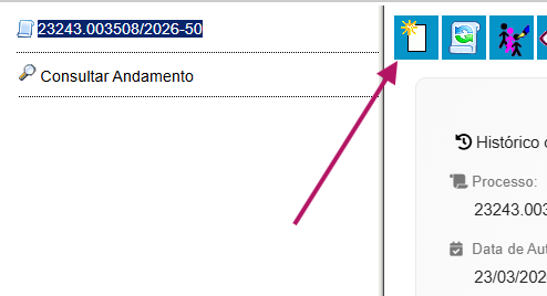 Com o processo selecionado, clique em Acompanhamento Especial (seta magenta)