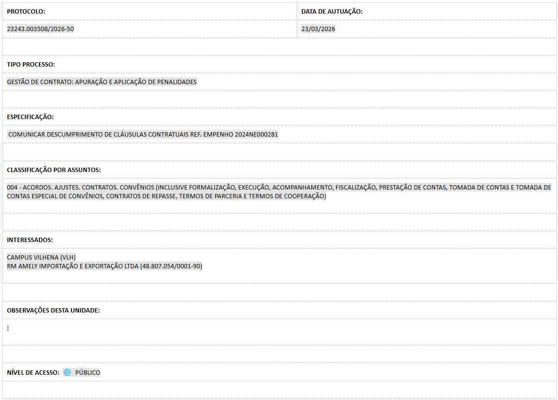 | Interessados | Campus Vilhena (VLH) e o fornecedor |