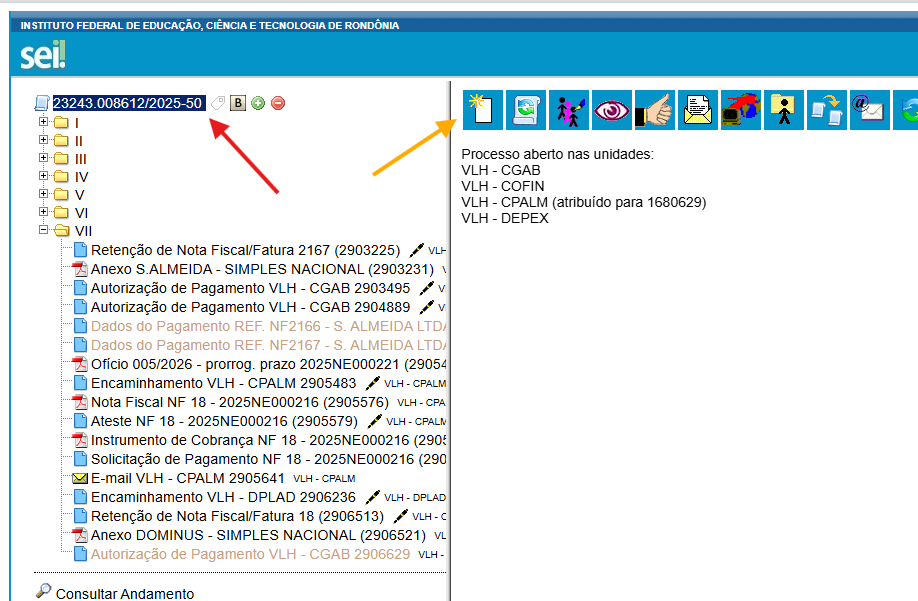 Localize o processo referente ao empenho para o qual será emitido o Atestado de Capacidade Técnica.