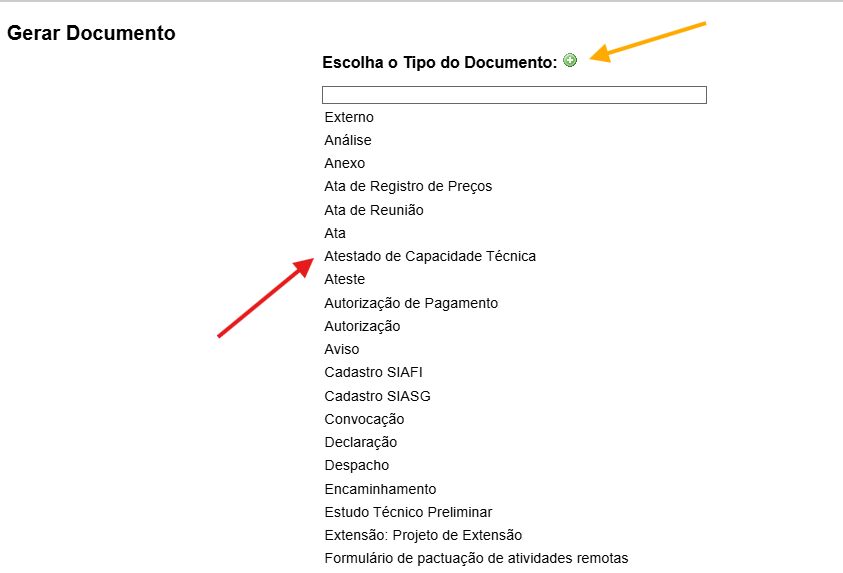 Selecione Atestado de Capacidade Técnica.