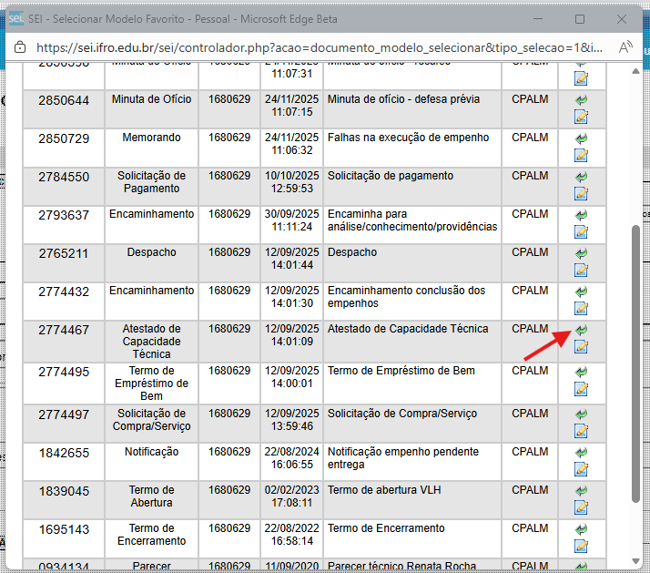 Procure na lista o modelo de Atestado de Capacidade técnica e clique em Selecionar este Modelo.