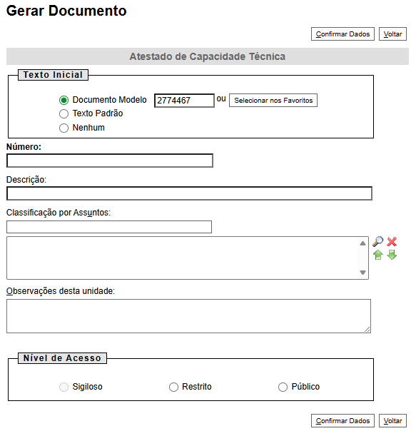 | Nível de Acesso | Público |