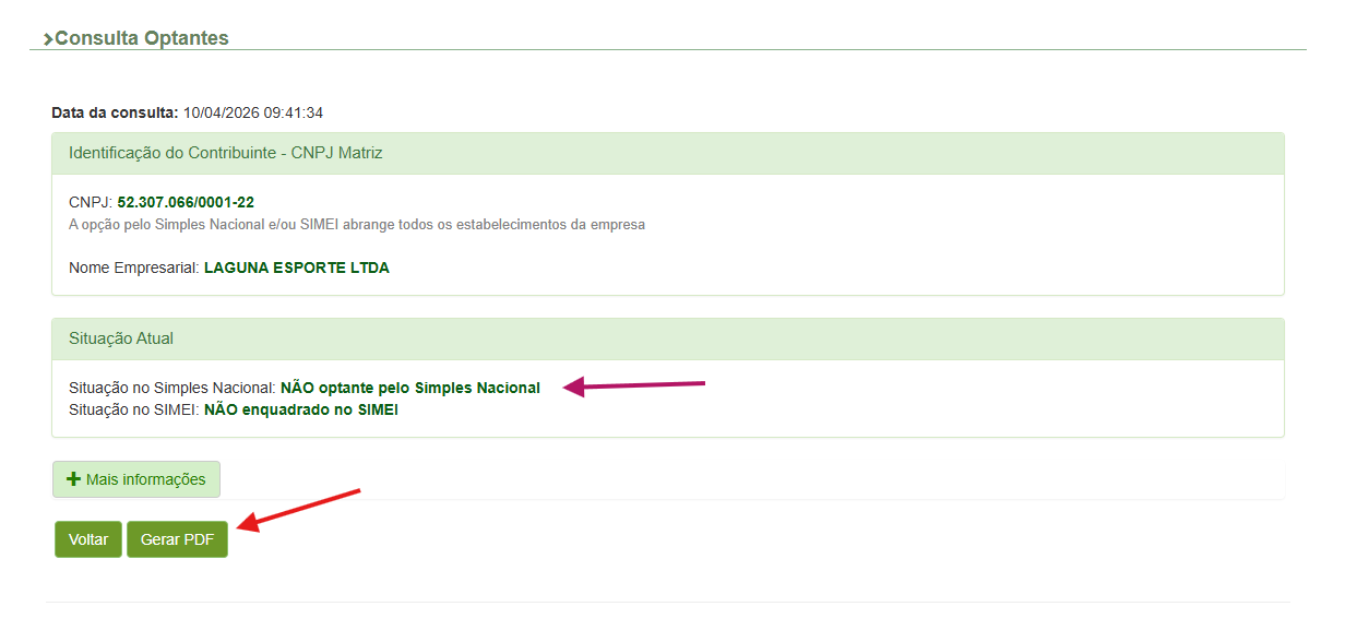 Informe o CNPJ (sem separadores) e clique em Consultar.