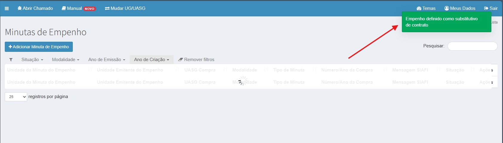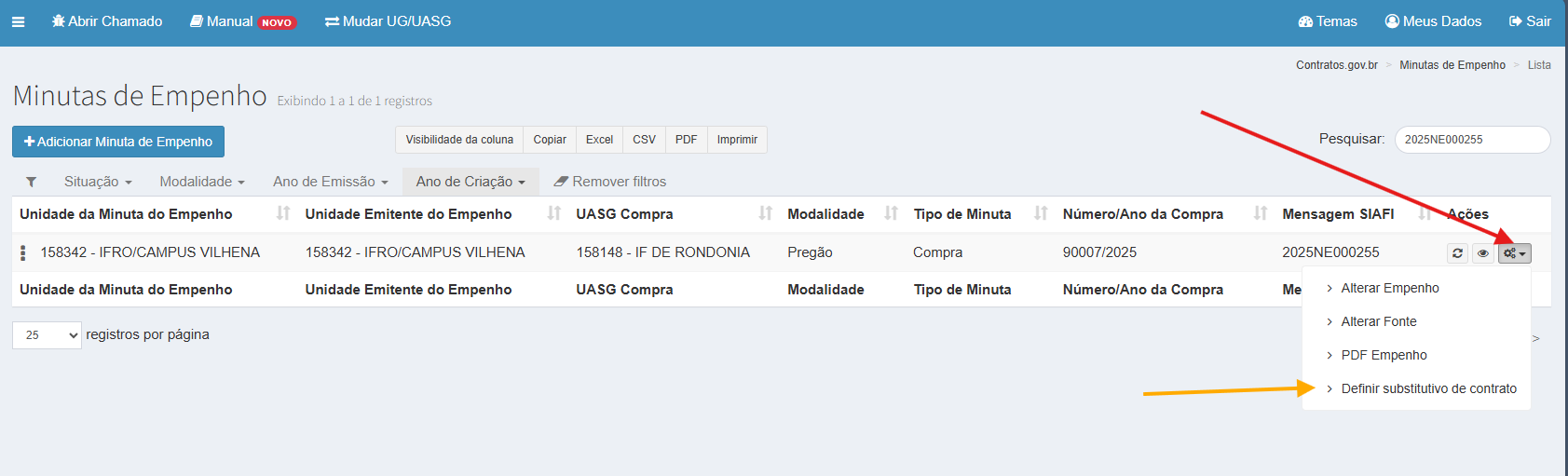 Os passos a seguir se aplicam para minutas de empenho da própria UASG.