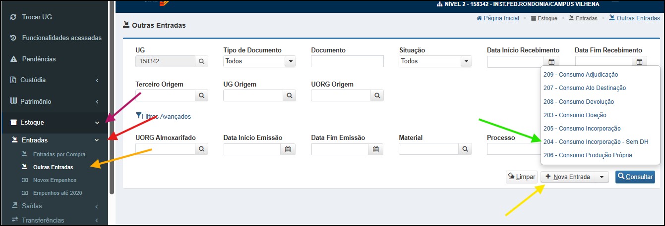 - Clique em 204 - Consumo Incorporação - Sem DH (seta verde)