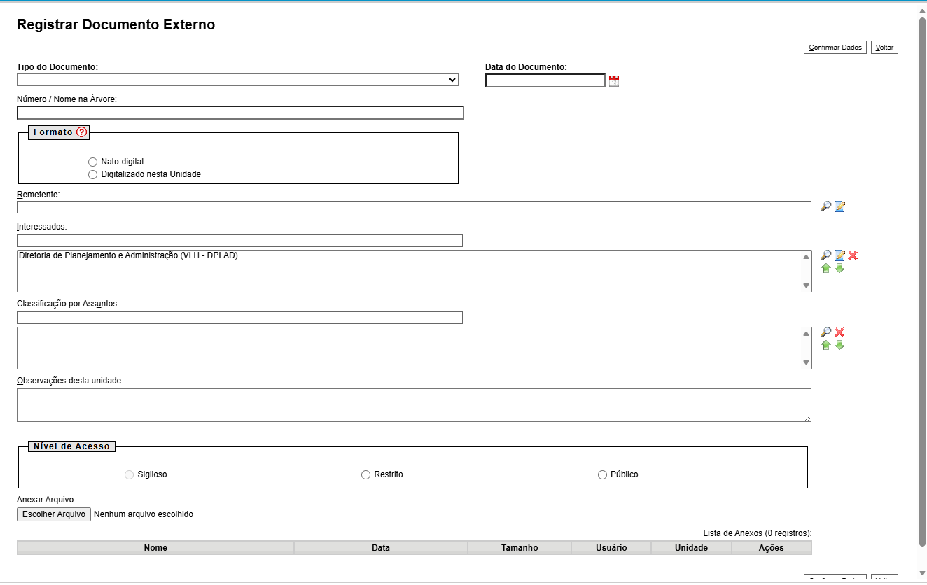 | Nível de Acesso | Público |