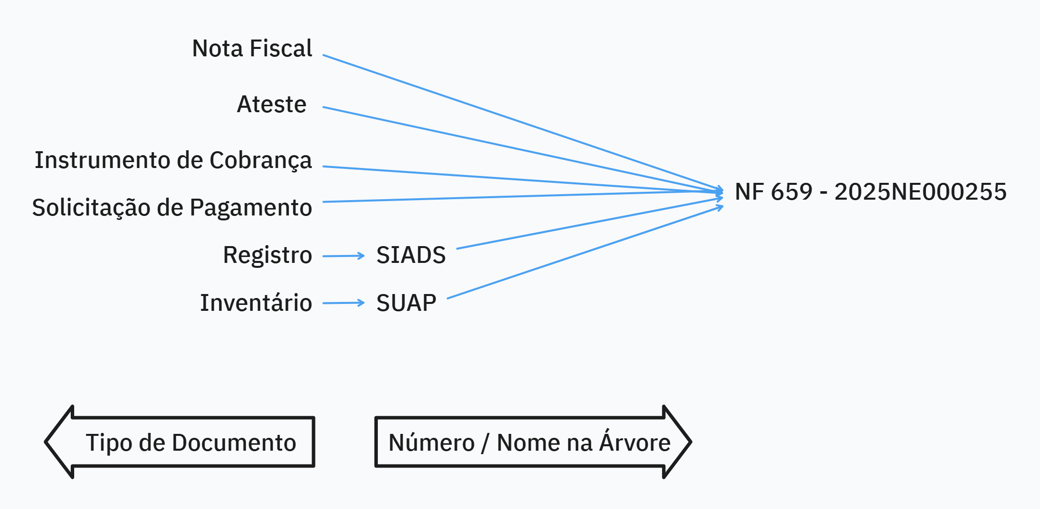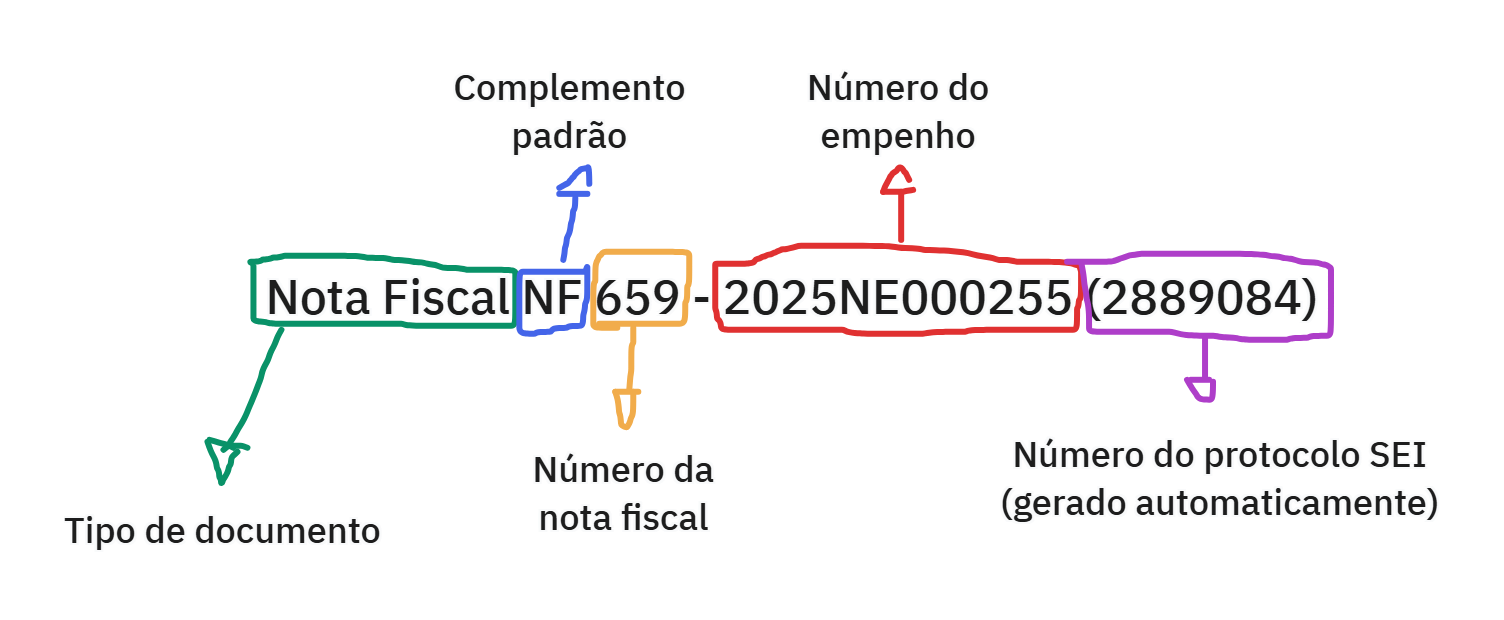 Toda nota fiscal está vinculada a algum empenho. Por isso, o padrão sugerido é que toda nota fiscal tenha o número do empenho no nome na árvore do SEI.