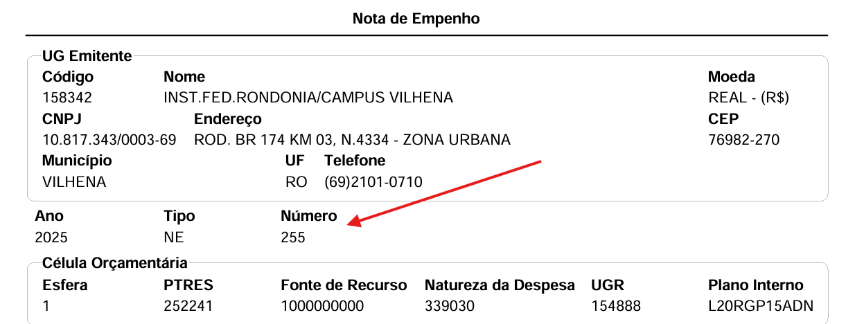 No artigo sobre empenho vemos que, aparentemente, o número do empenho teria apenas três dígitos.