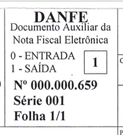 Seguindo o padrão sugerido, o número da nota fiscal é 659 e a série é 1.