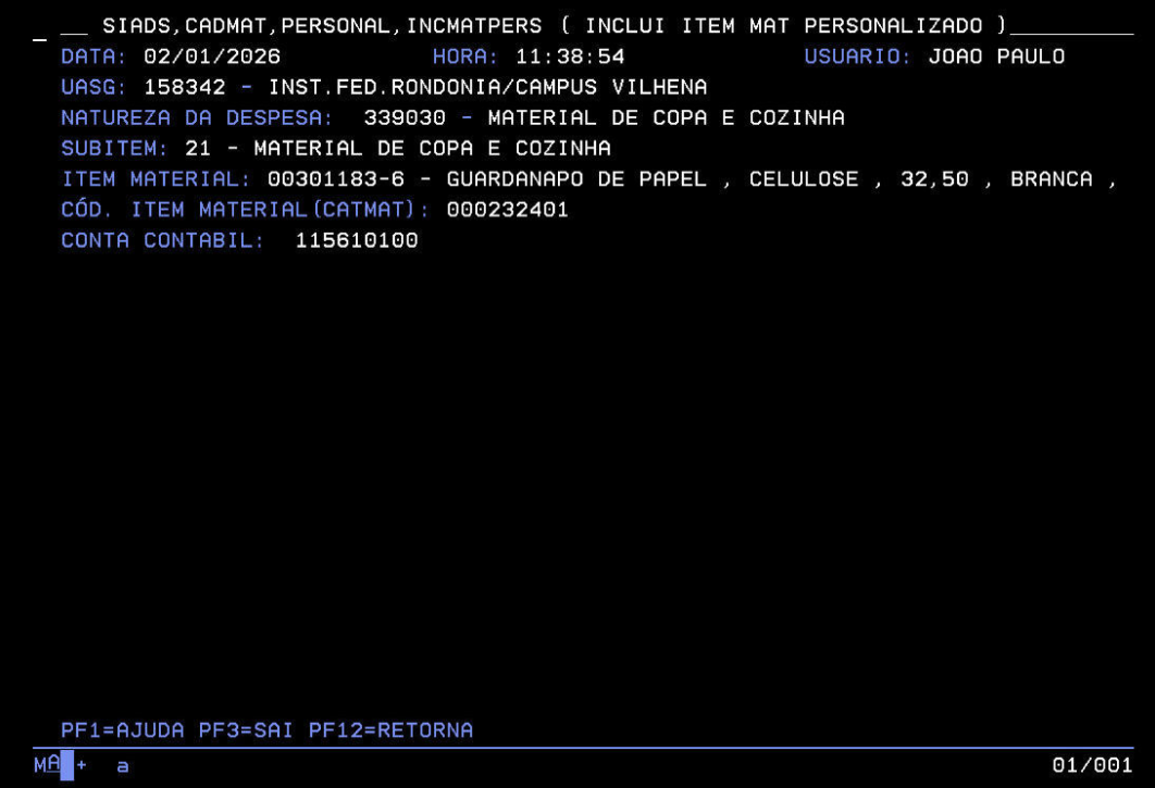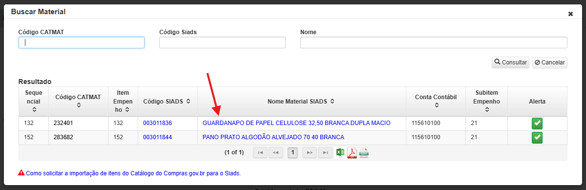 | MATERIAL_SIADS | 232401 | 283682 | Informado na mensagem de erro |