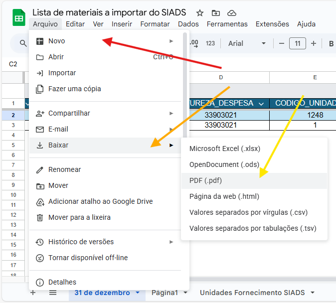No Google Drive da CPALM tem uma planilha chamada “Lista de materiais a importar do SIADS”. Faça uma cópia da página mais recente e deixe com a quantidade de linhas adequada a quantidade de itens.