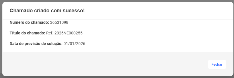 Chamado criado. Agora resta esperar. Notificações serão enviadas por e-mail a cada etapa.