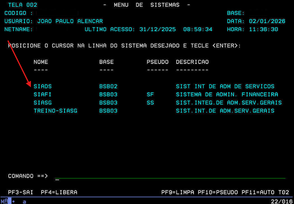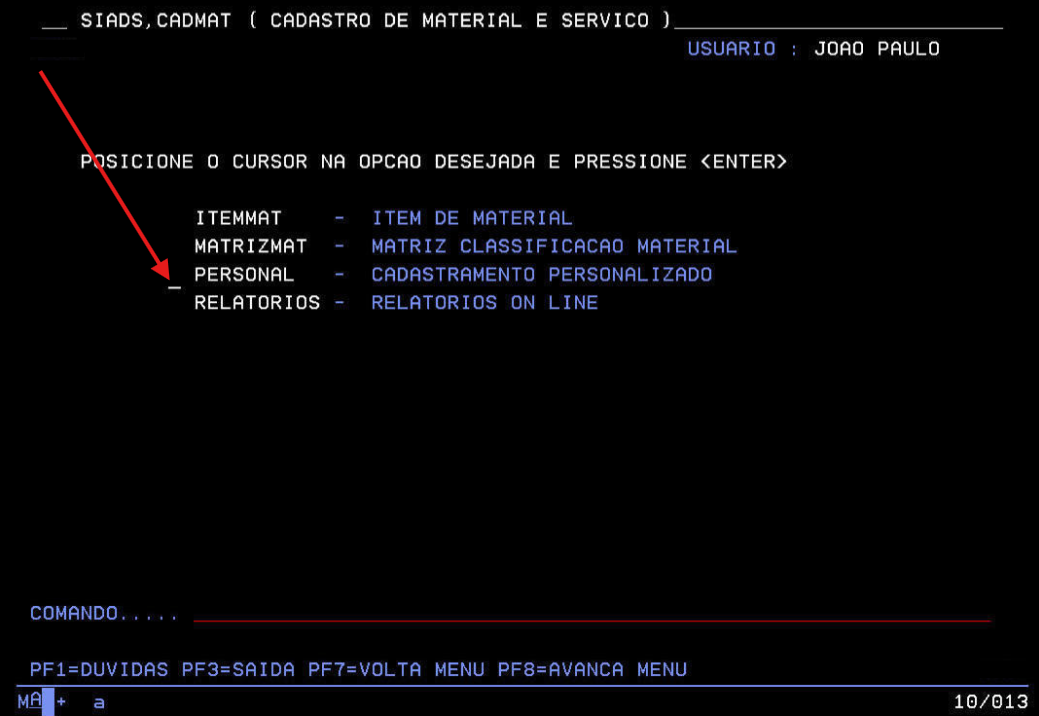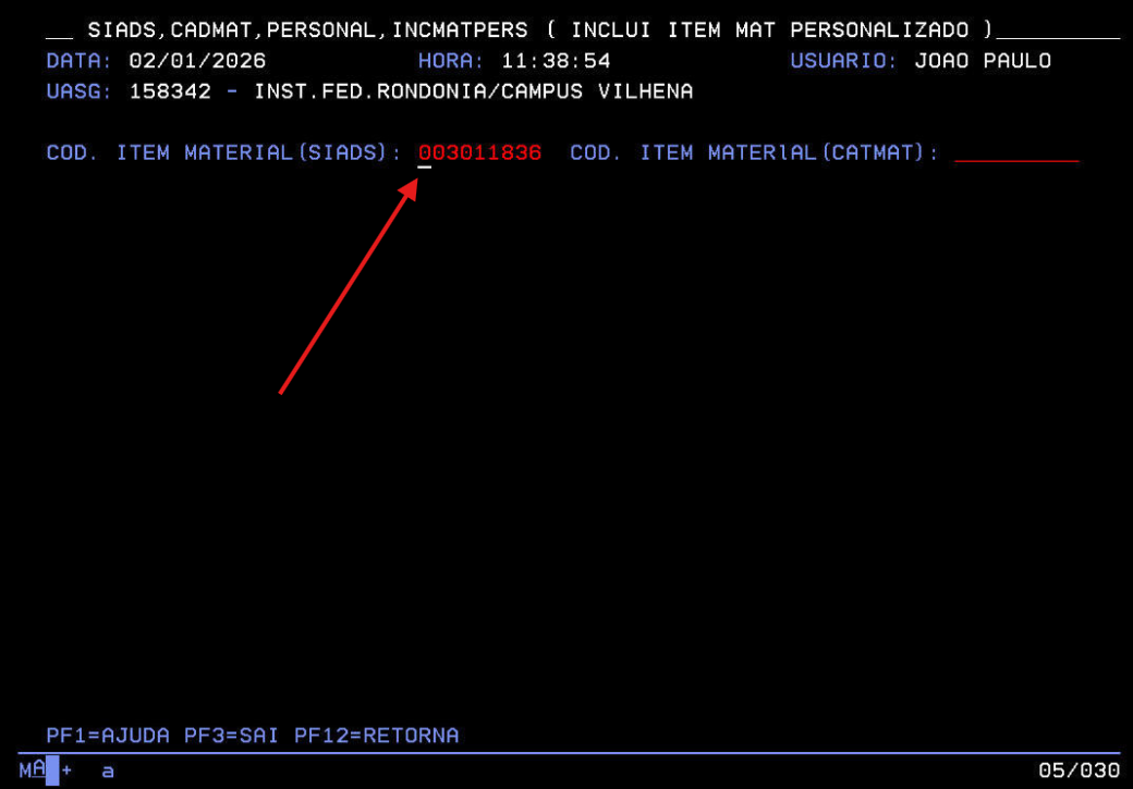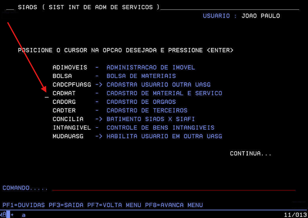Clique ao lado da palavra CADMAT e pressione Enter.