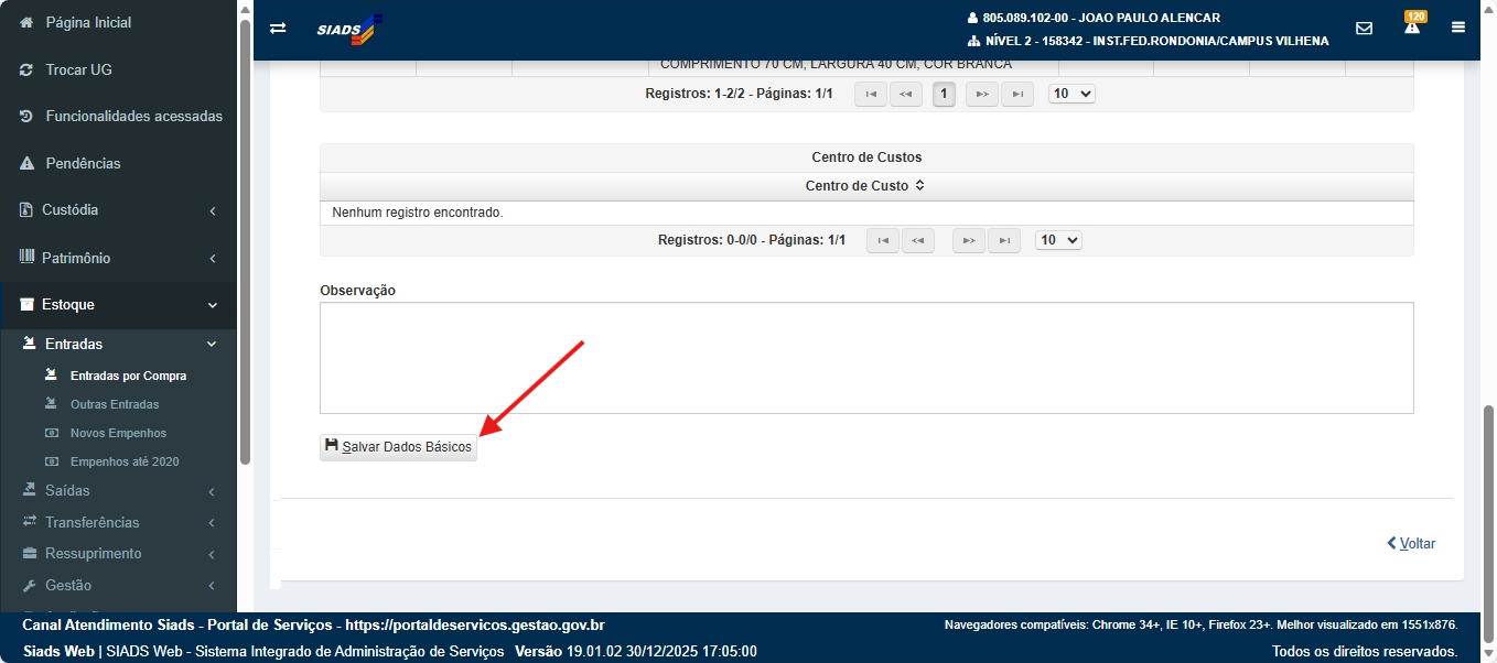 Na tela seguinte, vá até o final da página e clique no botão Salvar Dados Básicos.