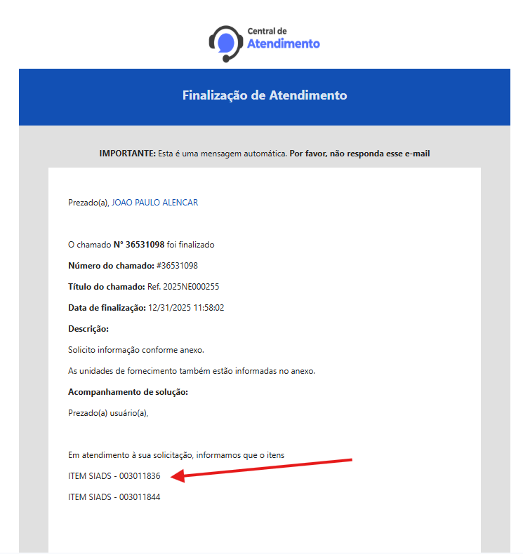 Quando o atendimento foi finalizado, os códigos dos itens serão enviados por e-mail (geralmente na ordem do pedido de importação)