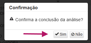 Após analisar todos os itens (ícone indicado pela seta magenta ficar verde), clique em Concluir Análise (seta laranja).
